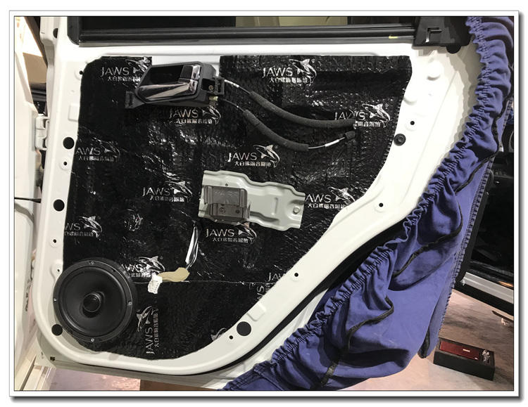 音响器材前,车韵技师先对启辰T7四门进行大白鲨隔音处理,强化钣金刚性,减少钣金共振噪音,并阻隔外部噪音的传入,同时音响的音质效果。